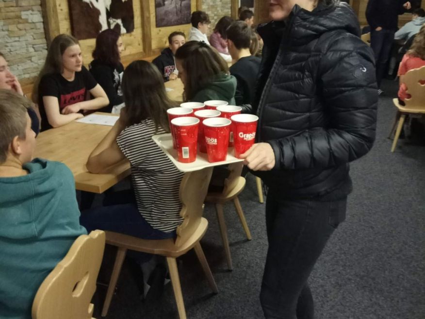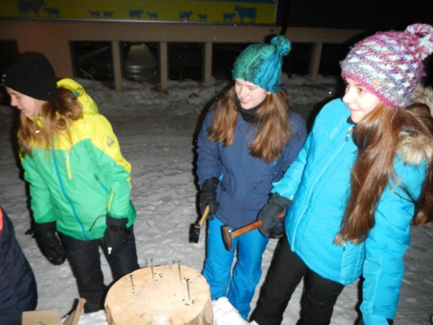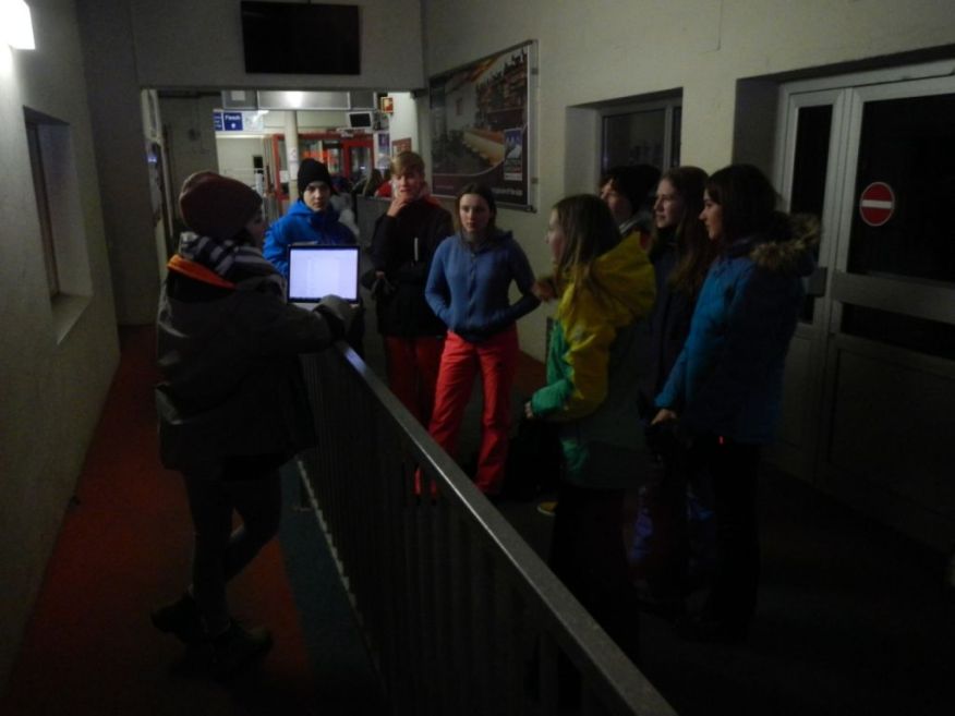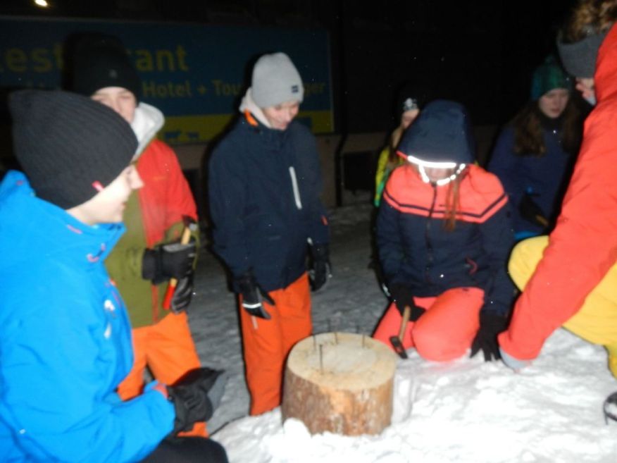 Nach dem Abendessen startete das erste der fünf Abendprogramme, welches von den Leitern mit viel Aufwand vorbereitet worden war. In den Skigruppen mussten die Schülerinnen und Schüler per Handy ein witziges Quiz über die Leiter bestreiten. Eine amüsante Angelegenheit und manch einer hätte sich noch mehr als 52 Fragen über die aus den Vorjahren bereits bekannten und teilweise unbekannten Leiter gewünscht. Um 22:00 Uhr war dann allerdings Nachtruhe.