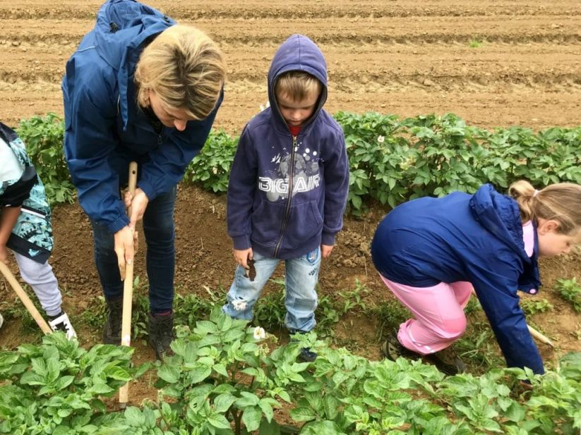 Bei unserem letzten Bauernhofbesuch hatten wir Kartoffeln gesetzt und Radieschen, sowie Karotten gesät. Heute stand wiederum ein Besuch an um unser Beet zu pflegen.