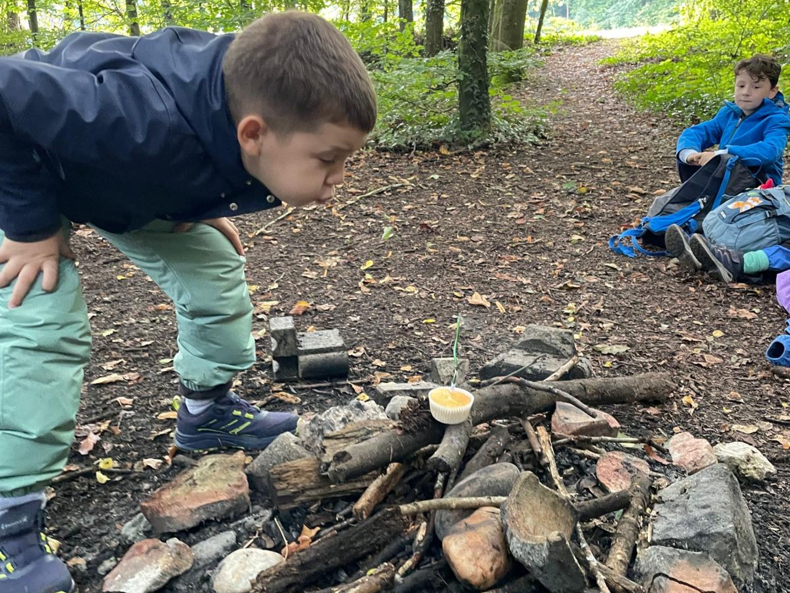 Auf dem selbst entzündeten Feuer wurden am Mittag leckere Würste und Marshmallows gegrillt. Am Nachmittag stand freies Spielen auf dem Programm.